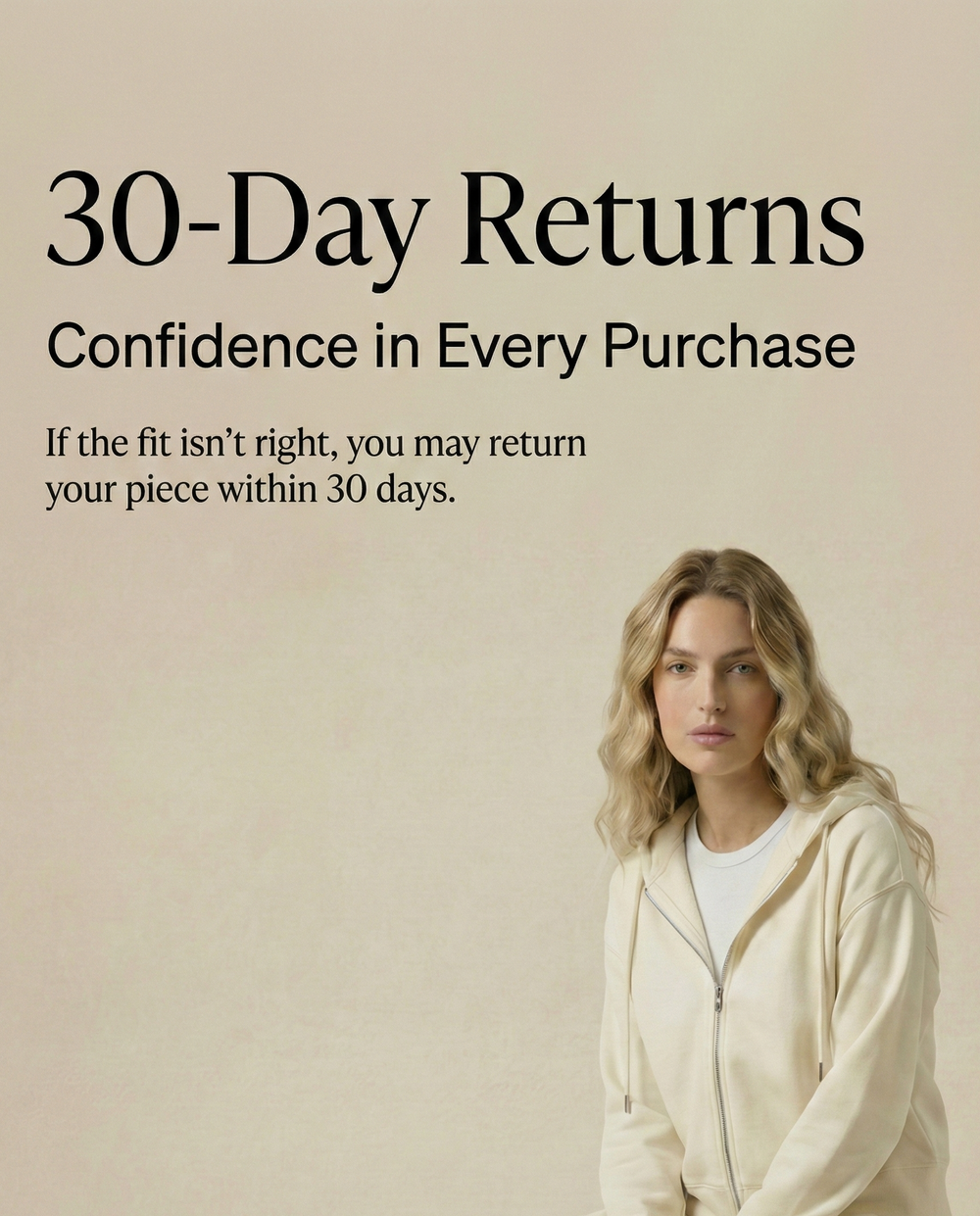 You may return any item within 30 days of delivery, provided it is unworn, unwashed and in its original packaging with all tags attached.